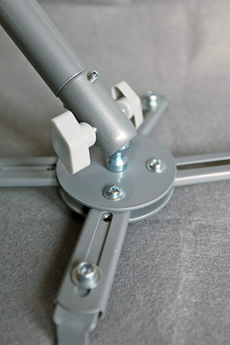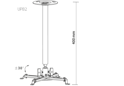 Uniwersalny uchwyt do projektorów, montowany do sufitu. Konstrukcja stalowa w kolorze szarym. Wyposażony w 4 regulowane ramiona umożliwiające przymocowanie każdego typu projektora, którego waga nie przekracza 10 kg.